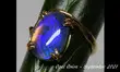 L'opale est colorée : bleu électrique avec un superbe Rolling Flash. Ce type d'opale est très rare. Le corps de l'opale est noire mais reste transparente (cristal).