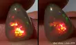 This opal is hydrophane opal which when soaked in water allows the base color to clear up...sometimes highlighting the play-of-color. If soaked in water, it will take one to two weeks to completely dry out and return to it original beautiful state.
