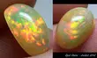 This opal is hydrophane opal which when soaked in water allows the base color to clear up...sometimes highlighting the play-of-color. If soaked in water, it will take one to two weeks to completely dry out and return to it original beautiful state.