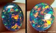 This opal is colored bright multicolor : red, green, blue, yellow.
