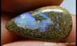 L'opale boulder matrice lors de sa création s'est déposée et mélangée à la roche mère, c'est pour cette raison que l'on taille ce type d'opale en gardant la roche mère (grès).