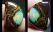 - Opale Boulder Koroit : l'opale s'est infiltrée dans les fissures et les creux des roches de grès. Les opales boulder massives ont une surface entièrement recouverte d'Opale Précieuse. Comme l'opale se présente sous forme de veines très minces et irrégulières, on la taille souvent en forme libre. Elle provient du Queensland (Nord Est Australien).