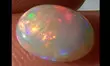 L'opale est colorée, brillant multicolor : rouge, vert, bleu, jaune, orange, violet avec magnifique et brillant jeu de couleurs. Les couleurs roulent d'un côté à l'autre de l'opale !