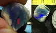 Les opales sont mouillées, comme c'est l'habitude avec les pierres brutes, ce qui permet de montrer les couleurs de l'opale que vous obtiendrez après le polissage.