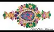 750/1000 yellow and white gold, diamonds, black opal, pink sapphires, spessartite and tsavorite garnets, emeralds, yellow sapphires, amethysts, rubies and sapphires.