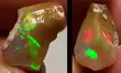 This opal is hydrophane opal which when soaked in water allows the base color to clear up...sometimes highlighting the play-of-color. If soaked in water, it will take one to two weeks to completely dry out and return to it original beautiful state.